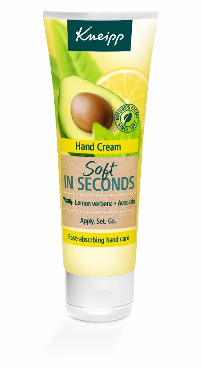 Odżywczy krem do rąk Kneipp odżywia i wygładza skórę praktycznie natychmiast. Zawiera naturalne masło z awokado i olejki jajoba. Awokado to znana od lat regeneracja i odżywienie skóry, ale nie tyko. Produkty z olejkiem z tego cudownego owocu (bo awokado to owoc, a właściwe jednonasienna jagoda) doskonale oczyszczają skórę i nawilżają. Sprawdzają się w pielęgnacji skóry podrażnionej a także trądzikowej i łuszczycowej. Z kolei olej jojoba swoją budową przypomina sebum produkowane przez ludzką skórę i dlatego nie powoduje uczuleń ani alergii. Dlatego tak go lubią skóry wrażliwe i skłonne do alergii. Krem Soft in Seconds dodatkowo bardzo szybko się wchłania i nie pozostawia uczucia tłustych rąk, co jest ogromnie ważne, a jego składniki są w 100% pochodzenia roślinnego.