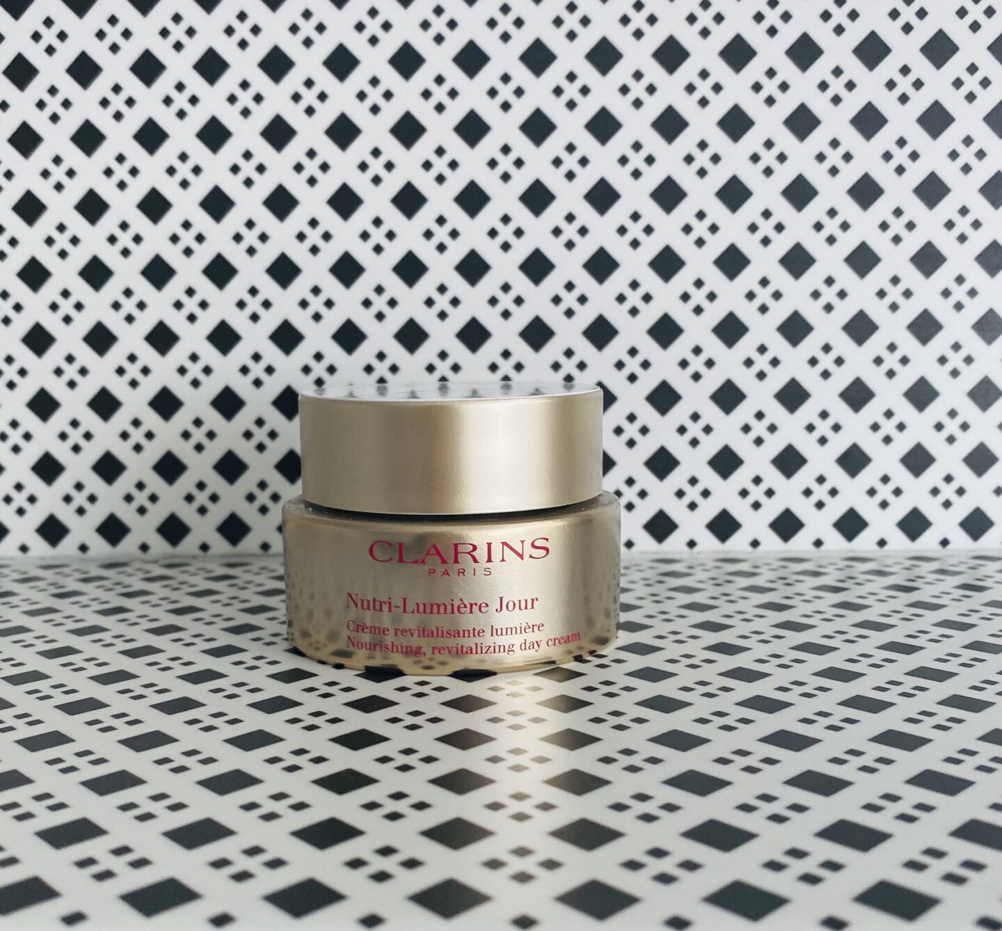 Krem typu Mercedes czyli Clarins Nutri-Lumiere Jour, który cudownie i zmysłowo rozświetla skórę. Ma w składzie 17 ekstraktów roślinnych – organiczny ekstrakt z kwiatu kasztanowca oraz escynę z kasztanowca. Wpływają one korzystnie na sieć mikronaczyń skóry. Co czuję natychmiast to aksamitna konsystencja, która w trakcie aplikacji na skórę zamienia się w jedwabisty olejek. Efekt – miękka i napięta skóra, ale bez uczucia tłustego filmu. Ten krem to szybka odnowa i odżywienie, a regeneracja to w efekcie końcowym blask i jednolity kolor, czyli coś, co kochamy. Do tego w ekologicznym opakowaniu, a to zawsze plus.