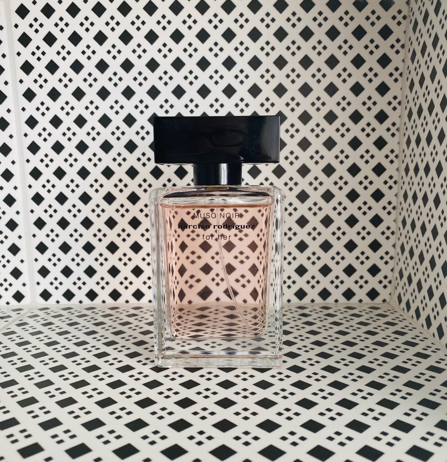 Przez kilka dni oblewałam się perfumami Narciso Rodriguez Musk Noir. Bardzo kobiecy zapach, zmysłowy i pociągający. Choć początkowo wydawał mi się zbyt słodki, z czasem nabierał pięknej, szyprowo-kwiatowo-owocowej głębi. Delikatne piżmo wzmocniono skórzanymi akordami zamszu i okraszone różą i białym cedrem. Jest tam też nutka słodkiej śliwki. Zapach dla mnie totalnie letni, komponował mi się z tutejszym aromatem skoszonych traw i sielskością wsi.
