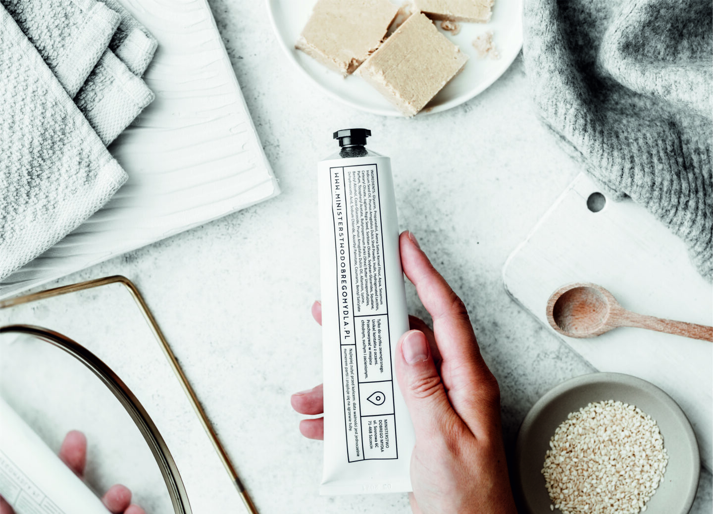 A teraz Ministerstwo Dobrego Mydła stworzyło pastę chałwową, która pachnie tak, że chce się ją zjeść. Jest idealna do zmysłowego oczyszczania i peelingu. Po nałożeniu na skórę delikatnie ją rozgrzewa, łagodnie otwiera pory i usuwa zanieczyszczenia. Cera staje się wygładzona a jednocześnie jest dobrze odżywiona. Pasta uzupełnia bowiem poziom lipidów w naskórku, a te chronią nas przed nadmierną utratą wody i wspomagają procesy regeneracji. No i pachnie… pachnie jak milion dolarów.