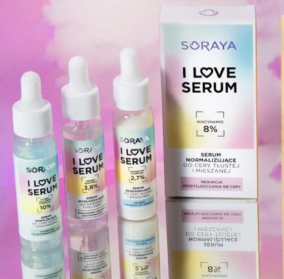 Serum jest przyjacielem każdej kobiety. A w nowej kolorowej linii SORAYA można wybierać do woli. Czemu są fajne? Bo mają proste składy, konkretne stężenia, skuteczne składniki aktywne, a do tego przeurocze tęczowe opakowania i sensoryczne formuły. Do tego warto wspomnieć, że bardzo łatwo i wygodnie je dozować – mają szklaną pipetkę.