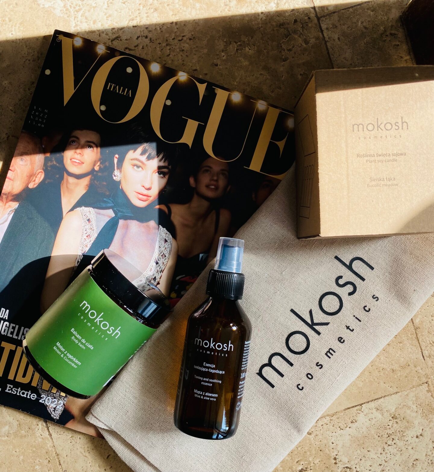 Wracając z wakacji myślałam, że czeka już tylko powrót do pracy… a tu dwie rzeczy zabrały mnie myślami w kolejną podróż… Honia przywiozła mi ze swojej cudnej kulinarnej podróży do Neapolu pięknego włoskiego VOGUEa a pod drzwiami czekała przesyłka od marki Mokosh, gdzie melonowy zapach balsamu do ciała i miętowy aromat esencji odświeżającej sprawiły, że znów odpłynęłam na plażę.