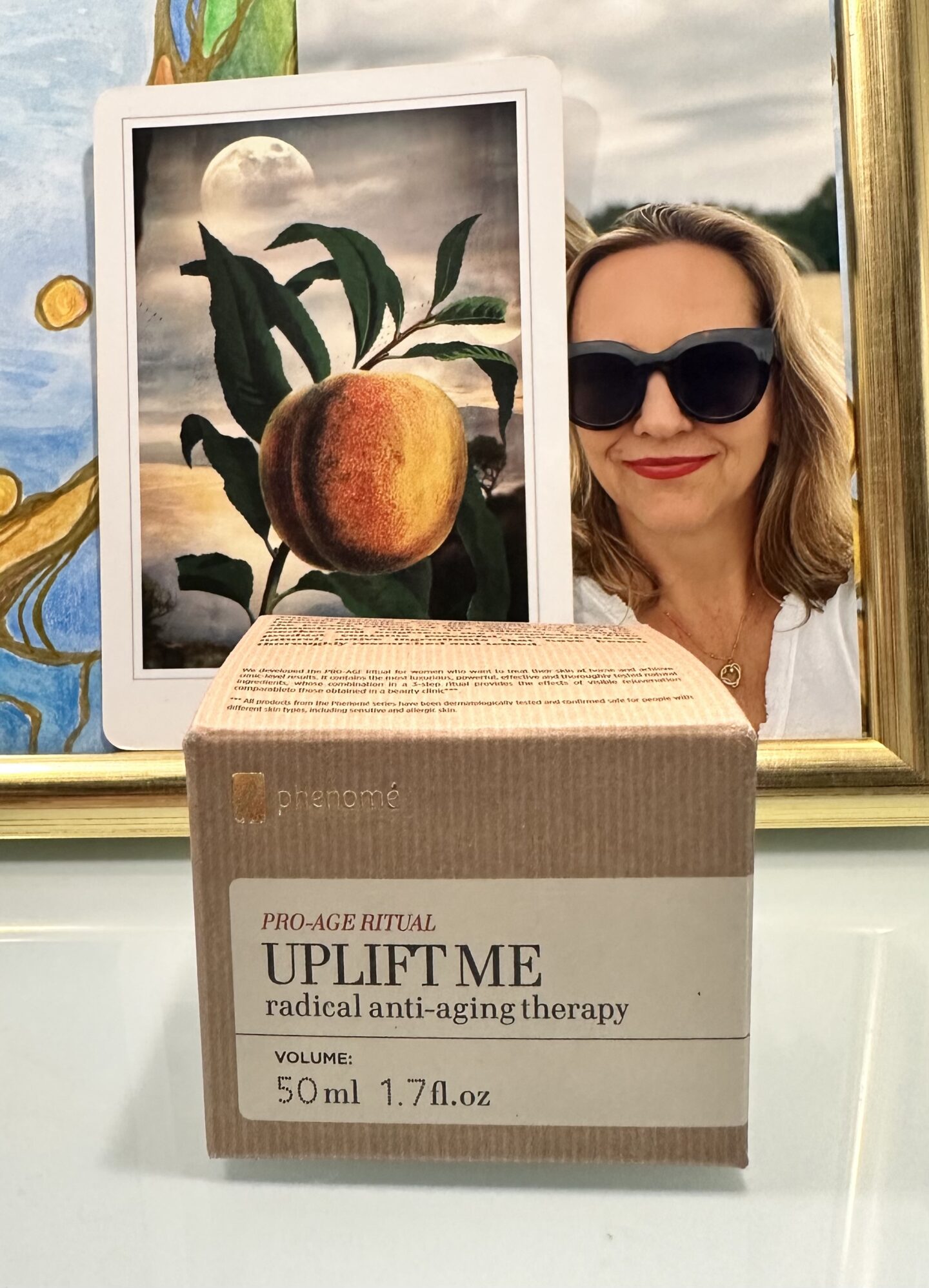 I na serum leci krem, moja miłość od premiery, czyli Uplift me marki Phenome. Magicznie natłuszczający, elegancki, pięknie łączy się ze skórą i daje efekt regeneracji, napięcia, zgodnie z nazwą – liftingu. Jest to produkt luksusowy.